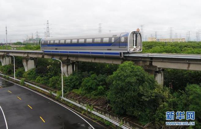 △6月21日,时速600公里高速磁浮试验样车在磁浮试验线上试跑。(新华社发)