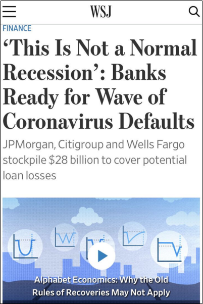 △《华尔街日报》称,为了应对即将到来的不良贷款潮,美国银行业的坏账拨备已达上百亿美元