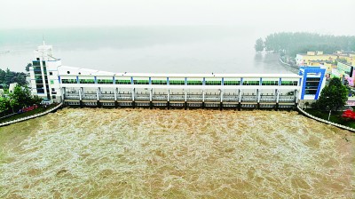7月20日,淮河王家坝开闸,滚滚淮河水涌入蒙洼蓄洪区。新华社记者 黄博涵摄