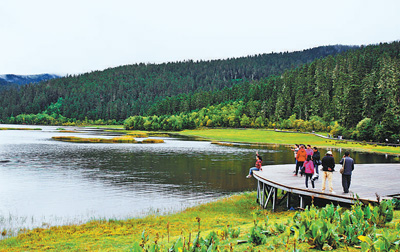 游客在普达措国家公园内游览。新华社 记者张誉东/摄