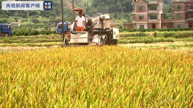 桂林市平乐县是传统农业大县,境内土地肥沃,阳光充足,雨量充沛,非常适宜种植农作物。时下正值早稻收获季,在平乐县阳安乡万亩绿色富硒米核心示范区,金灿灿的稻田里,收割机穿梭其间,忙着收割水稻,呈现出热闹的丰收景象。