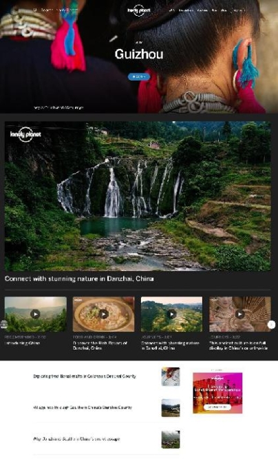 2020年7月22日,《孤独星球》在其官网介绍中国的首页发布了3条拍摄自贵州丹寨的旅游视频,重点推荐丹寨县的自然风景、传统非遗、苗乡美食。此外,《孤独星球》还通过3篇游记向全球旅行爱好者全面介绍了丹寨独具魅力的苗族村寨和不可错过的旅行体验。