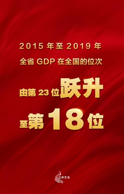 2015年至2019年,云南省GDP在全国的位次由第23位跃升至第18位,经济总量实现历史性跨越。