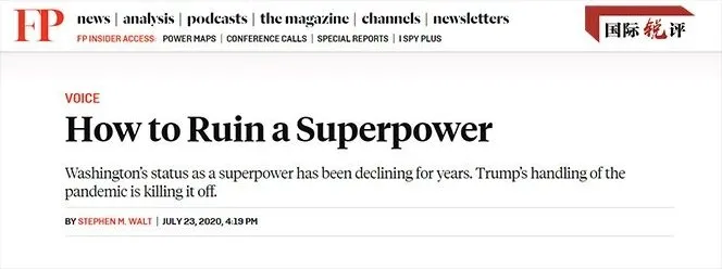 当地时间7月30日,又一个令美国人民沮丧的消息传来:美国商务部公布的首次预估数据显示,今年第二季度美国经济下滑32.9%,创1947年有记录以来最大降幅。从疫情到经济,美国人民都正在为政客们的任性妄为埋单。当蓬佩奥意图将其演讲塑造成针对中国的“冷战宣言”时,美国人民应当看清:恰恰是这种鼓动对抗的冷战思维,构成美国经济和国家安全的最大威胁。