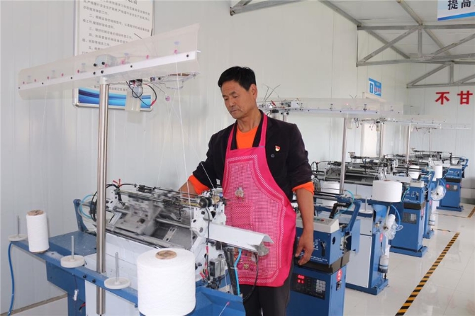 据驻村帮扶工作队队长谈存实介绍,村上的扶贫车间概算总投资100万元,申请天津对口帮扶资金60万元、帮扶单位兰州职业技术学院和镇村两级筹措资金40万元,购进全自动线手套编织机等机器30多台,建成了全自动程控纺织品加工生产线。
