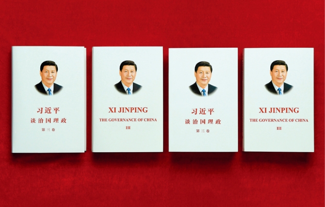 中央宣传部(国务院新闻办公室)会同中央党史和文献研究院、中国外文局编辑的《习近平谈治国理政》第三卷,近日由外文出版社以中英文版出版,面向海内外发行。图为《习近平谈治国理政》第三卷中英文版的精装版和平装版。 新华社记者 李贺/摄