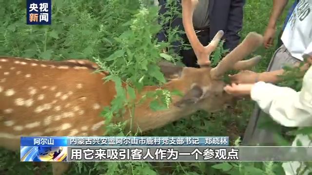 在阿尔山白狼镇鹿村,郑晓林正忙着带游客参观鹿园。鹿园里的30多只母鹿,下羔率今年头一次达到了九成以上。