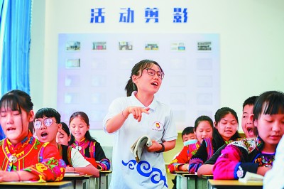 来自重庆大学的支教老师赵美正在给绿春县平河乡大头村小学的学生们上课。