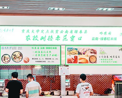 重庆大学学生在食堂定点扶贫示范窗口点餐。