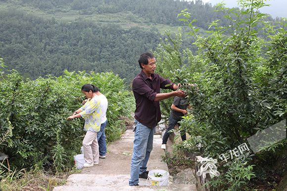 村民在刘瑞发(右一)的花椒地里采花椒。马媛摄 华龙网发