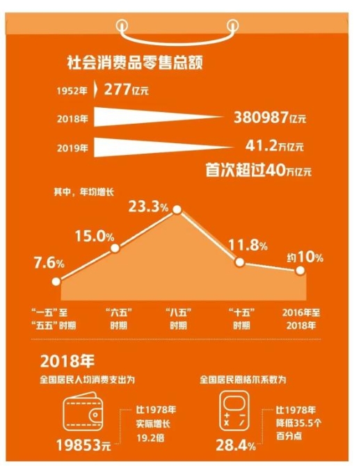第三,脱贫攻坚战、污染防治攻坚战取得显著成效,保障了全体居民都能实现消费需求的跃升。数据显示,2019年末,农村贫困人口551万人,比上年末减少1109万人;贫困发生率0.6%,比上年下降1.1个百分点。以改善生态环境质量为核心,污染防治攻坚战取得关键进展,主要污染物排放量持续减少,生态环境质量总体改善。在水和空气等基本生活需求得到保障的基础上,才能去追求更高水平的消费升级。