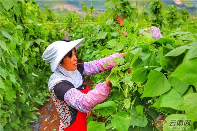 走进云南连万家农业科技开发有限责任公司关塘、腊庄蔬菜种植基地,一片绿油油的蔬菜映入眼帘,一阵阵菜香扑鼻而来,在西红柿、白菜、莲花白、青辣椒类种植区域,一个个又大又红的西红柿挂满枝头……10多名工人正忙着采收,装箱上车。