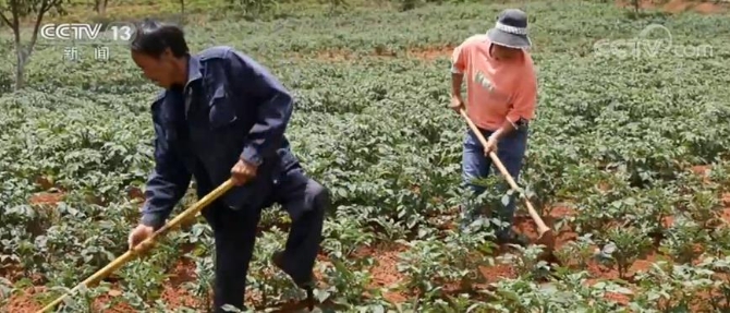 这里是陆良县板桥镇大桥村的磨盘山,王先夫妇正和10多位雇来的村民一起,对马铃薯进行松土、除草。王先夫妇俩都是残疾人,2015年,他们家被认定为建档立卡贫困户。2017年,两口子在磨盘山盘下了40多亩土地种植马铃薯,这些地一部分是200元钱一年一亩租来的,一部分是外出务工的乡亲们无偿提供的。之后,两口子每年都有几万元的收入,家里不仅盖起了新房子,还被评为“光荣脱贫户”和曲靖市 “最美家庭”。不过,就在前不久,他们遇到了一个困难。因为种植面积达到了60多亩,品种也增加了魔芋、玉米和核桃,每天得有10多位村民来做工,手里的周转资金一下子紧张起来。此时,陆良县文明办和当地农村商业银行的工作人员带来了好消息,因为王先夫妇被评为先进,可以申请相应的“文明信贷”。