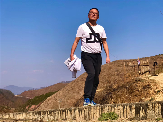 简单吃点速食粥,穿上跑鞋,他便开始了“走山”——跟着村里的路走一圈,是他每天的“固定节目”,风雨无阻。从合姑洛乡政府出发,一路走到山顶马红村,沿途6公里,不仅能晨练,还能顺便走访一下贫困户。