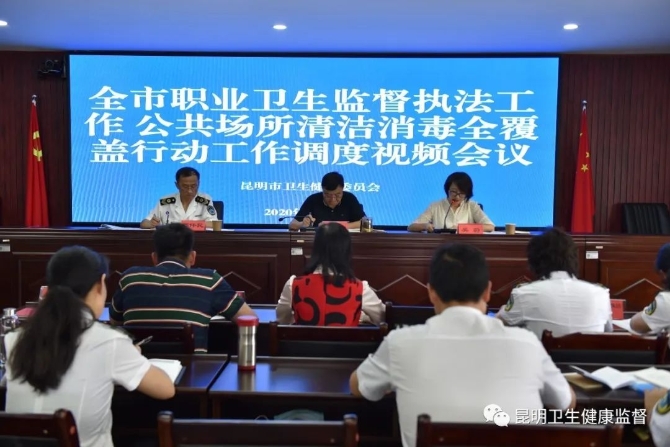昆明信息港讯 2020年8月10日下午,昆明市卫生健康委综合监督执法局在市级行政中心八号楼会议室召开了全市职业卫生监督执法工作调度视频会议。