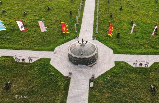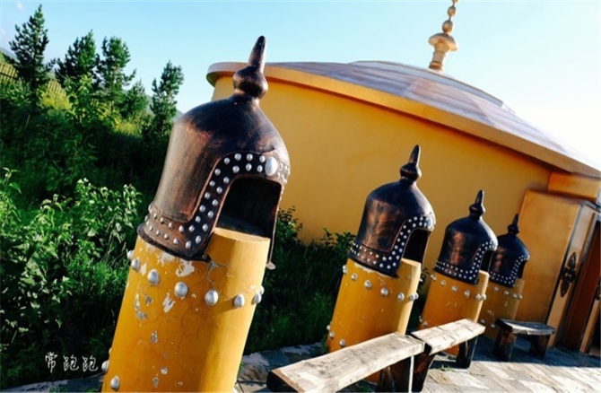 具有强烈宗教色彩并象征神在其位的敖包和集佛教、道教、萨满教于一体的祭天台等建筑共同构成景区中轴线。 蒙古包内,还在演绎当年的故事。