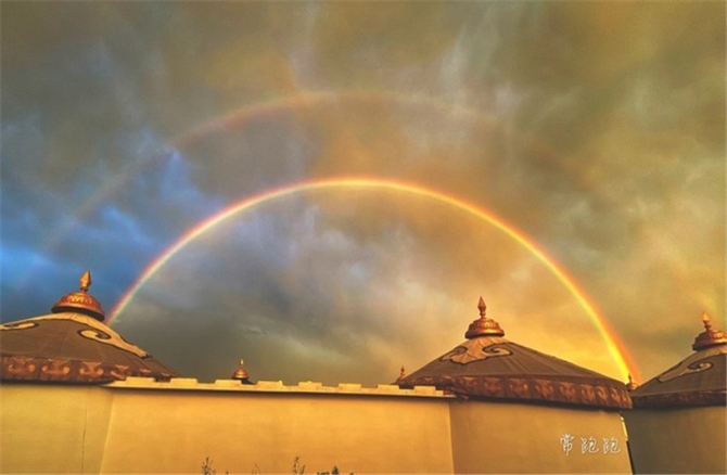 草原天气瞬息万变,晴空万里之时也可以瞬间阴云密布、暴雨倾盆,不过,雨过天晴后的彩虹和火烧云,是大自然给予幸运之人的礼物,而寓意幸运的双彩虹,还真是要依赖好人品。