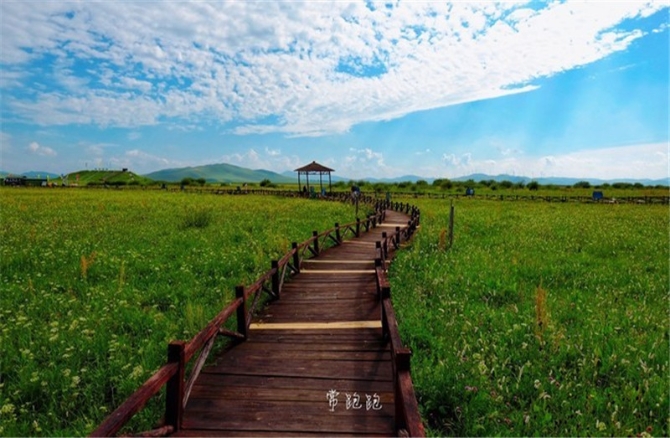 毗邻大汗行宫景区的是海留图湿地公园,感受完蒙古族的文化历史,来到海留图湿地公园就是开启了纯撒欢儿模式,听着鸟鸣而起,沿着金莲湖畔骑行,欣赏的是地地道道的草原湿地风光。两岸花草随风轻舞飞扬,步行木栈道绵延不绝,湖面碧波荡漾,这样的草原美景光是置身于其中就已经能让人开心到起飞了。