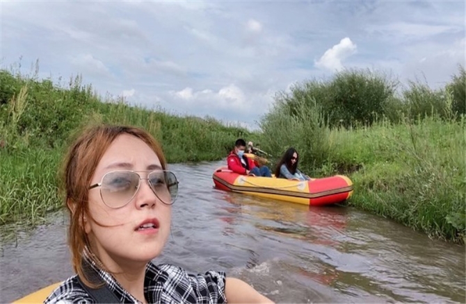 个人觉得最有意思的项目是湿地漂流。这项玩乐,特别适合小伙伴们一起玩。海留图湿地公园中穿流而过的一条闪电河(海留图湿地是闪电河的上游,与 沽源 县同属于闪电河流域,2015年被确认为 张家口 坝上重要湿地的一部分),从空中俯视,九曲十八弯,漂流就是在此河中进行的。两人一个小皮艇,两岸青草滩,头顶蓝天白云飘,感受着随波逐流的乐趣。