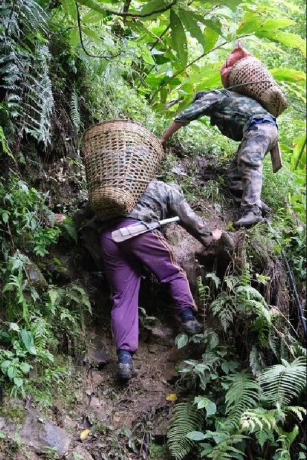 草果喜阴爱水,在深山密林里长得最好。出山的道路坡陡、沟深,收获时节必须请人帮着运输。