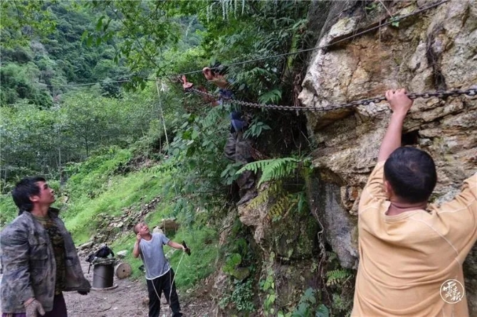 6月16日至17日,在定点帮扶单位的帮扶下,驻村工作队员和村民们齐心协力,在距乔马桥不远处,拉起了桥马嘎的第一条产业溜索。