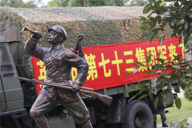 8月12日清晨,江西九江,阴雨蒙蒙,当地群众早早守在路旁,准备送别他们的英雄。军车缓缓驶出永修县恒丰中心小学,陆军第73集团军某合成旅圆满完成防汛救灾任务,踏上归程。