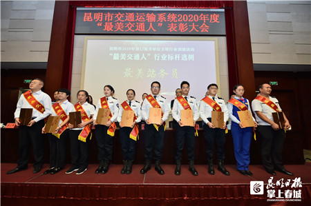 8月18日,由市文明办、市交通运输局主办,昆明日报承办,昆明珍茗食品有限责任公司协办的昆明市交通运输系统2020年度“最美交通人”表彰大会召开,现场对评选出的40名“最美交通人”进行表彰。