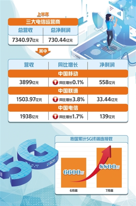 截至8月18日,在中国电信公布其2020年中期业绩后,我国三大电信运营商2020年半年度业绩报告悉数出炉。数据显示,三家运营商上半年总营收达到7340.97亿元,总净利润为730.44亿元。