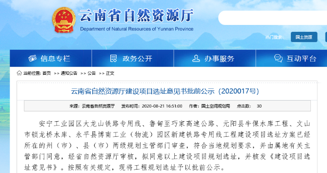 云南省自然资源厅网站发布