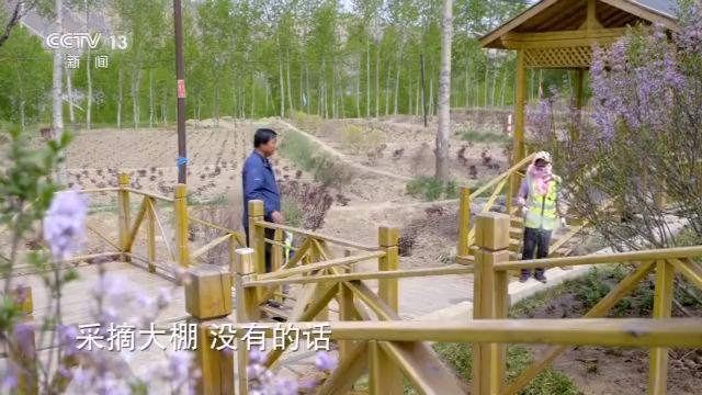班彦村四社村民 吕志平:现在咱们地里面拔草的、浇水的、拉枝的、剪枝的都是咱们本社的,第四社的。咱们班彦村一社的也来了好几个妇女,门口打工的话,工资是一样的,早晚能照顾到家里的孩子和老人,中午还有两个小时的时间,可以干家里的零碎活。