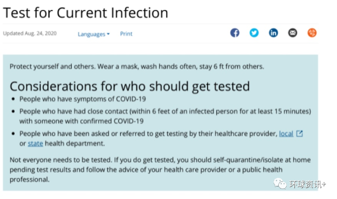 在美国新冠肺炎确诊病例每天保持3万例以上高位增长的当下,美国疾控中心(CDC)近日在官网发布了应对新冠肺炎疫情的最新指导建议,指出即使与新冠病毒感染者有密切接触,但是只要没有出现相关症状的人,不再必须接受检测。该建议还指出,只有属于易感染人群或者医生、所在州或地方官员建议检测的才需做检测。