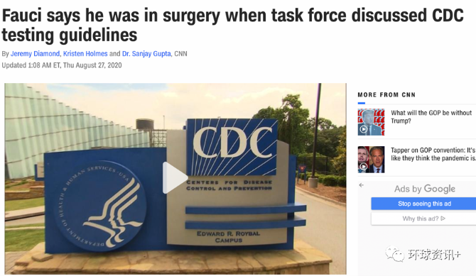 △《纽约时报》报道,美国疾控中心8月24日悄然放松了防疫准则,降低了测试标准