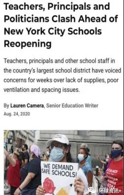 △《美国新闻与世界报道》报道,纽约众多学校的校长和老师举行抗议,要求“安全开学”。