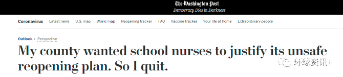 △ 《华盛顿邮报》刊登护士自述:“我所在县的学校要求护士为不安全的重开计划辩护,我不干了。”