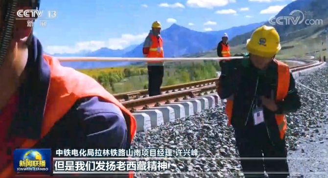 座谈会上,总书记强调,要围绕川藏铁路建设等项目,推动建设一批重大基础设施、公共服务设施。今天(8月30日),记者在川藏铁路拉萨到林芝段看到,建设者正在全线展开电气化施工。