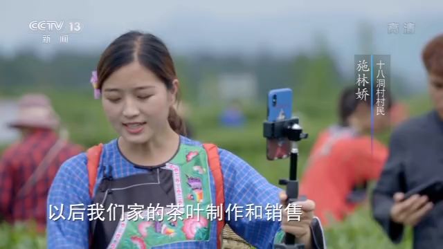 十八洞村村民 施林娇:像我妈妈在十八洞村也种植了一片茶园,以后我们家的茶叶制作和销售也将委托给他们。姐姐,你在这儿采摘茶叶啊,你可以教我采吗?