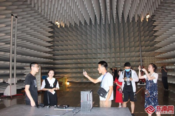 媒体代表团在电波暗室参观采访 东南网记者 卢金福 摄