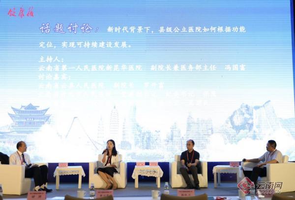 在以“新时代背景下,县级公立医院如何根据功能定位,实现可持续建设发展”为话题的讨论环节中,云南省第一人民医院新昆华医院对话云南省云县人民医院、云南省开远市人民医院,就包括医院管理、人事薪酬制度、信息化建设、康养结合等在内的各方面问题进行交流。