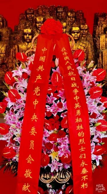 △寄托缅怀与敬意的鲜花(总台央视记者陈扬拍摄)