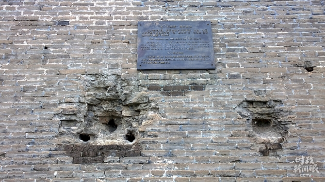 △这是“七七事变”日军攻打宛平城留下的弹坑。