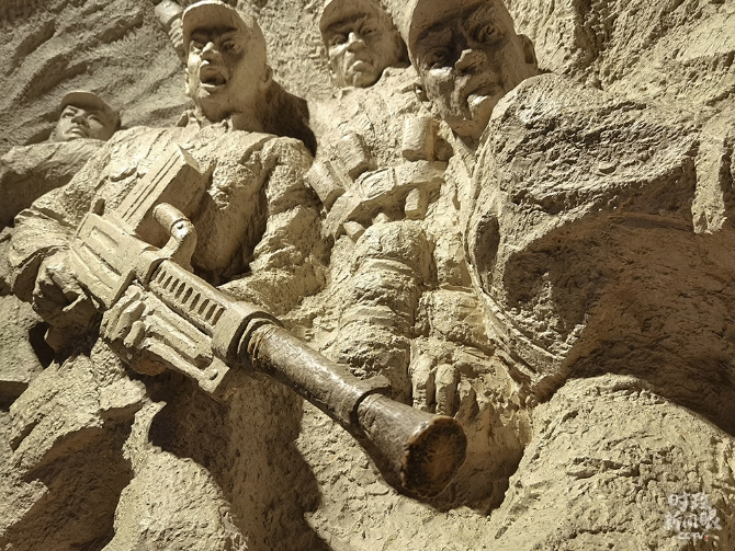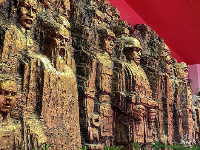 △象征中华民族团结抗战的大型浮雕《铜墙铁壁》(总台央视记者李辉拍摄)