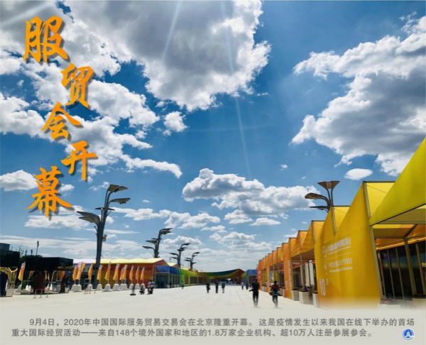 昨天,北京奥林匹克公园中轴景观大道格外绚烂,以“全球服务,互惠共享”为主题的2020年中国国际服务贸易交易会(下简称“服贸会”),在北京奥林匹克公园中心区内、紧邻鸟巢和水立方的国家会议中心隆重开幕。在2008年,这里曾经见证了北京奥运会的辉煌。