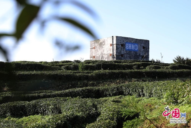 在2000多海拔的高山茶园中,有15个共计2300立方米的高位沼液储存池,为茶叶提供有机肥。中国网记者刘桢珂摄影