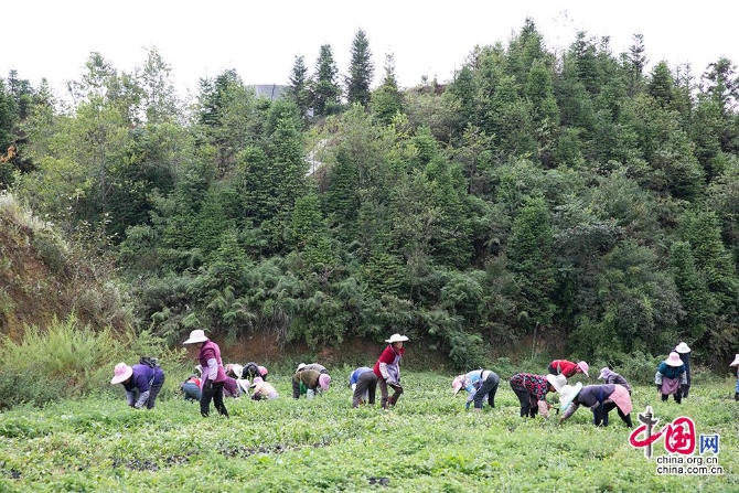 9月7日,当地村名在为山底培育的茶苗除草,谭正义开发的纳雍县雾翠茗香循环农业示范园区带动骔岭镇 500 多名村民就业,其中有200多名村民常年就业。中国网记者 董宁 摄影