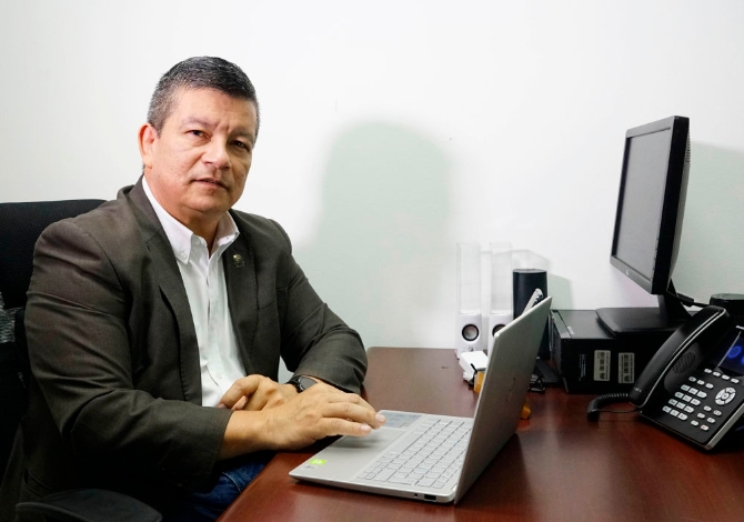 9月8日,萨尔瓦多-中国友好协会主席胡安·曼努埃尔·弗洛雷斯在萨尔瓦多首都圣萨尔瓦多接受采访。(新华社发,亚历山大·培尼亚摄)