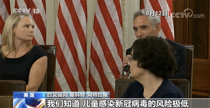 白宫顾问 斯科特·阿特拉斯:我们知道,儿童感染新冠病毒的风险极低,甚至比季节性流感都低。