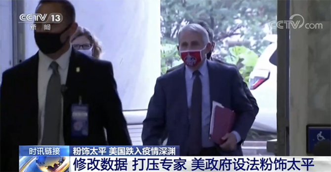 对于揭露疫情真实情况的人,美国政府也进行了一系列打压。以美国国家过敏症和传染病研究所所长安东尼·福奇为例,作为白宫新冠病毒应对工作组的关键成员,也因频频“说真话”而遭到打压,白宫向媒体散发抹黑福奇的资料,阻挠他出席国会听证会,特朗普曾在社交媒体上转发写有“是时候解雇福奇了”的内容。