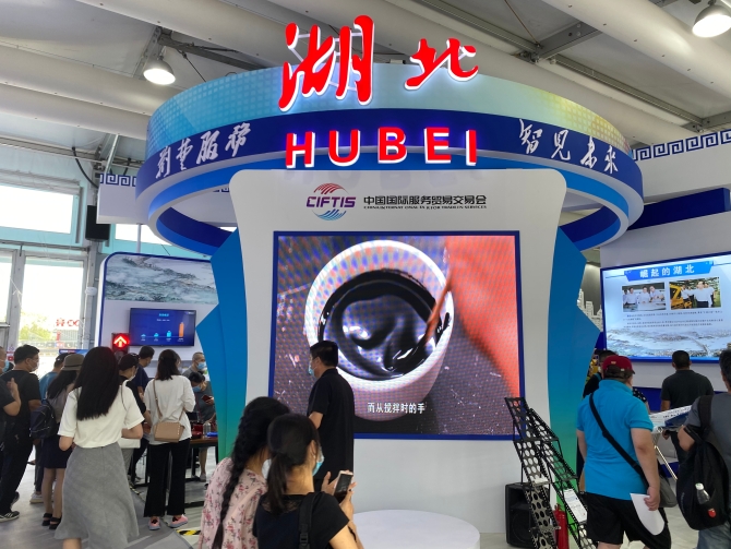 服贸会期间,观众驻足参观湖北展台。 王寅 摄