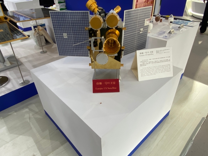 湖北展台展出的珞珈一号01卫星模型 王寅 摄
