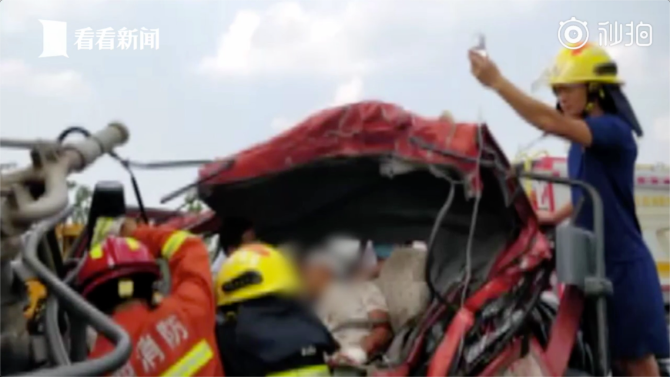 发现货车司机被卡在驾驶室